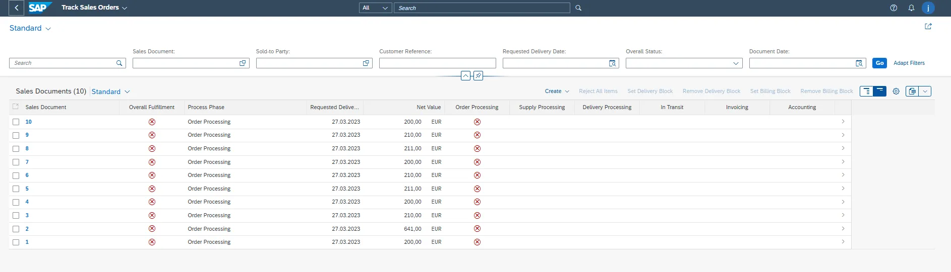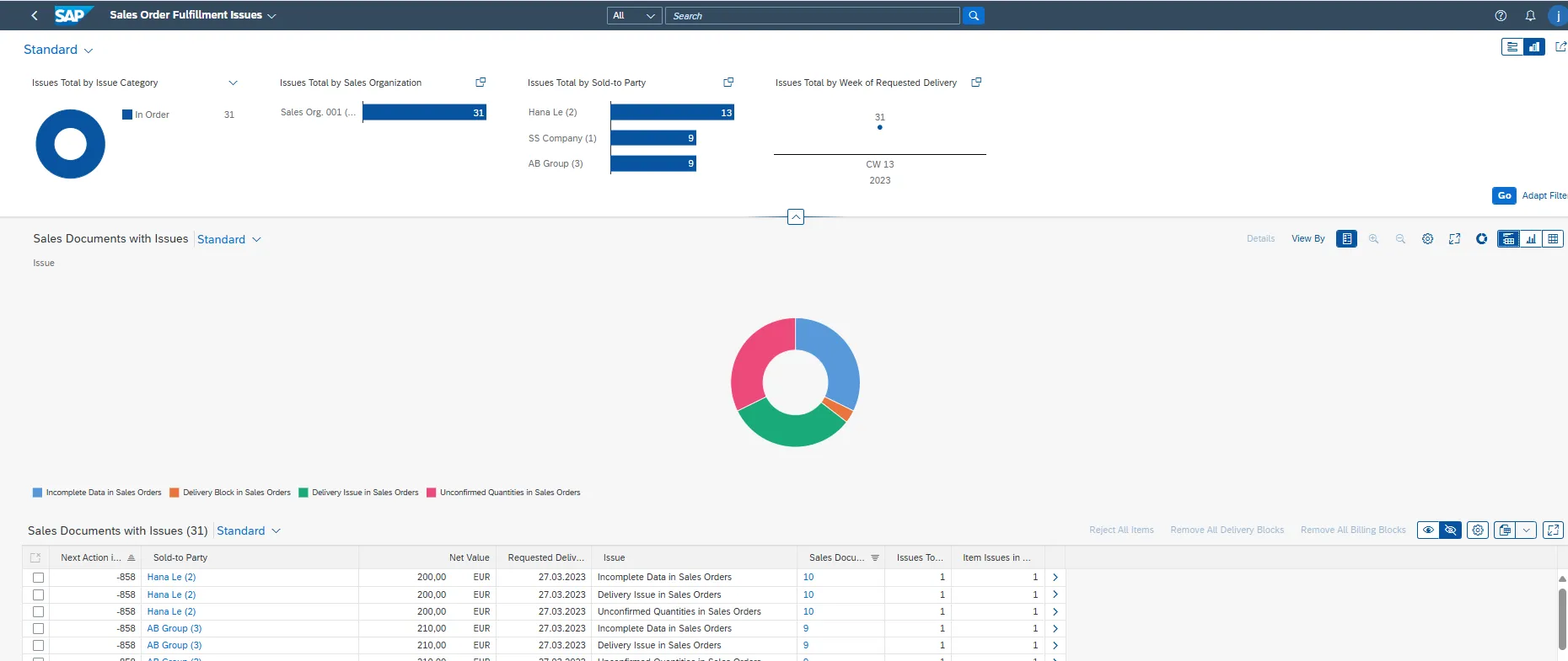 • Use this app to identify orders stuck in credit check, pricing, or delivery block status.