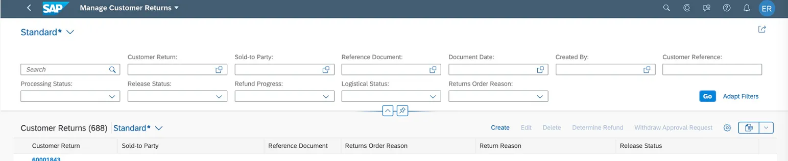App F4832 (Manage Customer Returns) supports the quick creation and approval of returns.