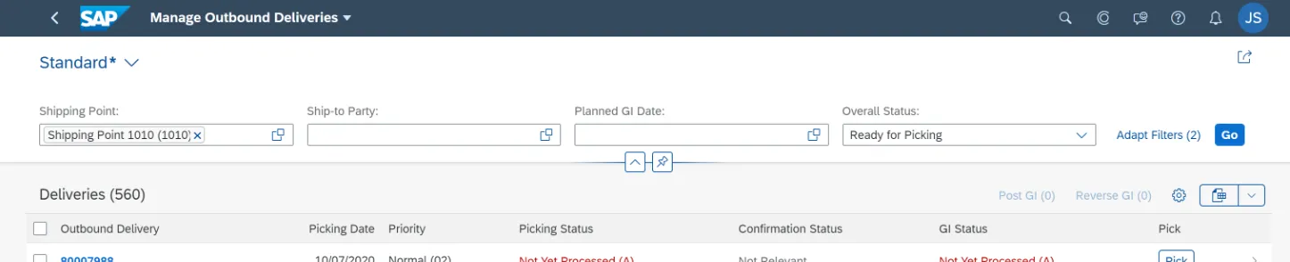 • Monitor deliveries due for picking or PGI (Post Goods Issue).