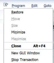 2. Create session while busy – again, if you are running a transaction that takes a long time, you may want to carry on working in another session at the same time. Your “new session” icon will not work while the cursor is busy, so how do you do this? Again, click on the options icon in the top-left of the screen, but this time select “New GUI Window” to create a new session.