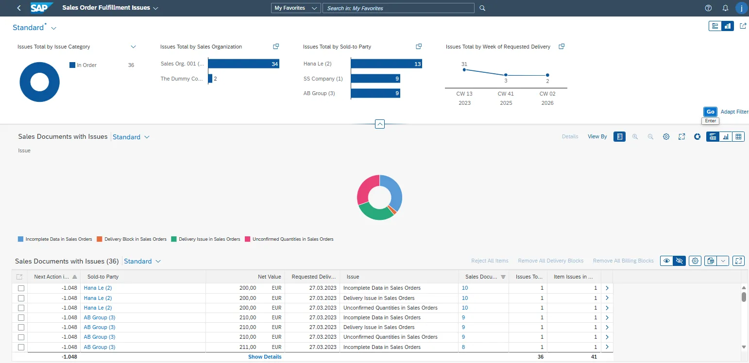 Standard Fiori apps such as Sales Order Fulfilment immediately expose delivery blocks, ATP delays, and billing backlogs.