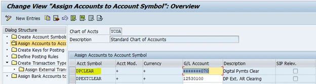 The clearing account of the payment service provider corresponds to the account symbol DPCLEAR.