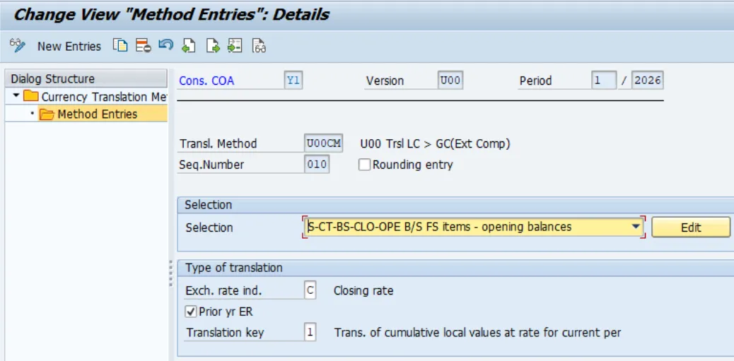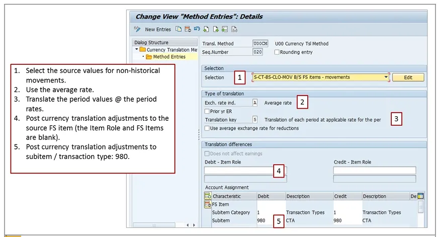Then sequence entries are to be defined . Methods consist of sequences. Each sequence is used to translate sets of FS Items and transaction types such as non-historical balance sheet movements at average.