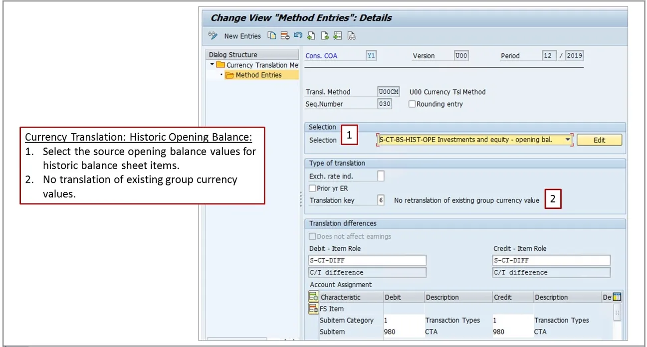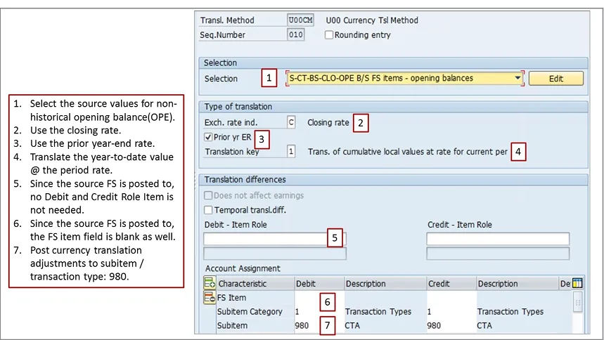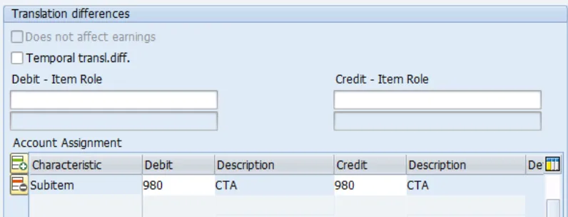 • For Non- Historic FS Items When system Translates from Local Currency to Group Currency, the differences will be posted to same FS Items. But it uses Subitem 980. (Currency translation adjustments: Post to original FS Items for non-historic items.)