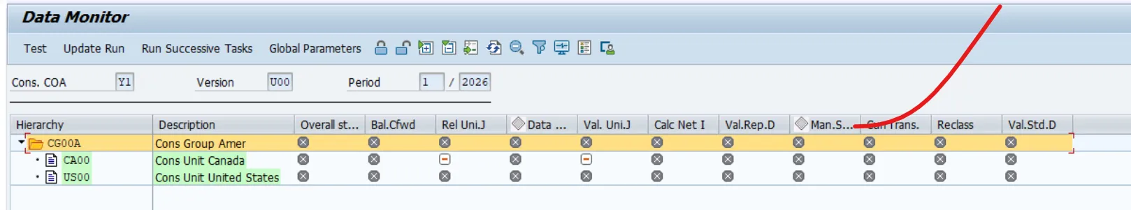 • Open the Consolidation Monitor.