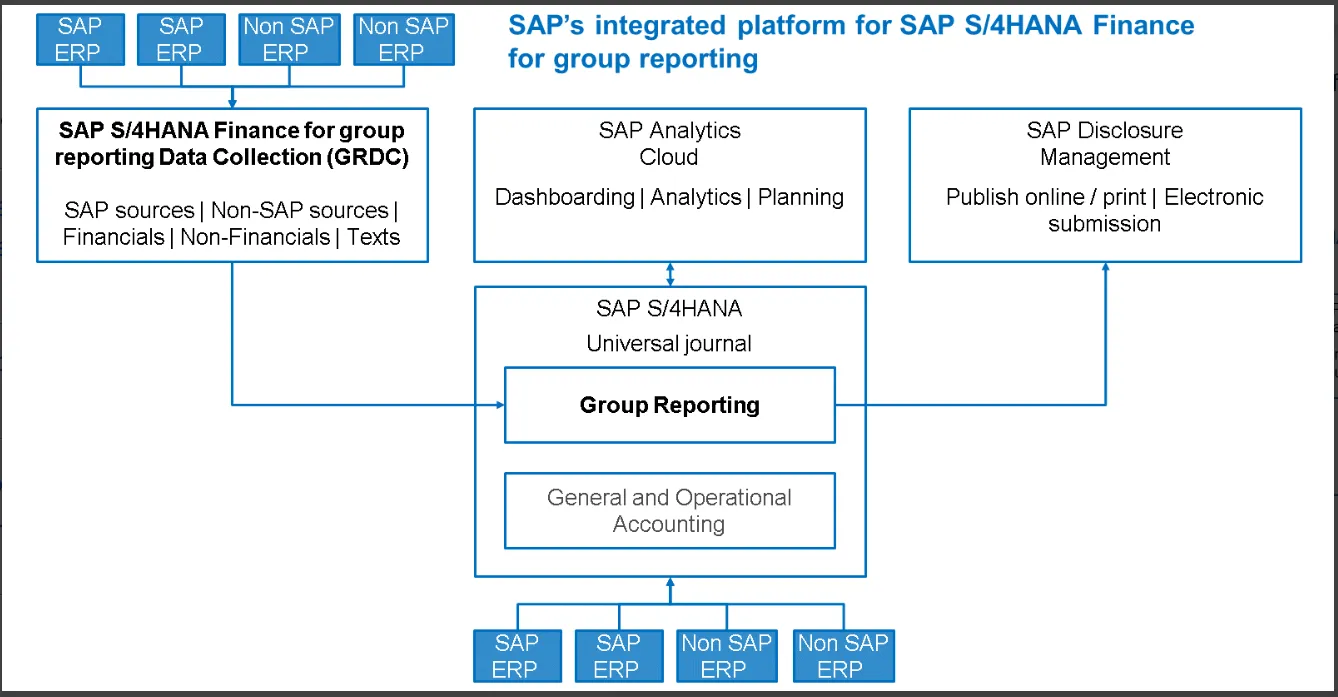 • Group Reporting Overview (SAP Help Portal) – Explains how GRDC integrates with SAP S/4HANA Cloud and SAP Analytics Cloud
