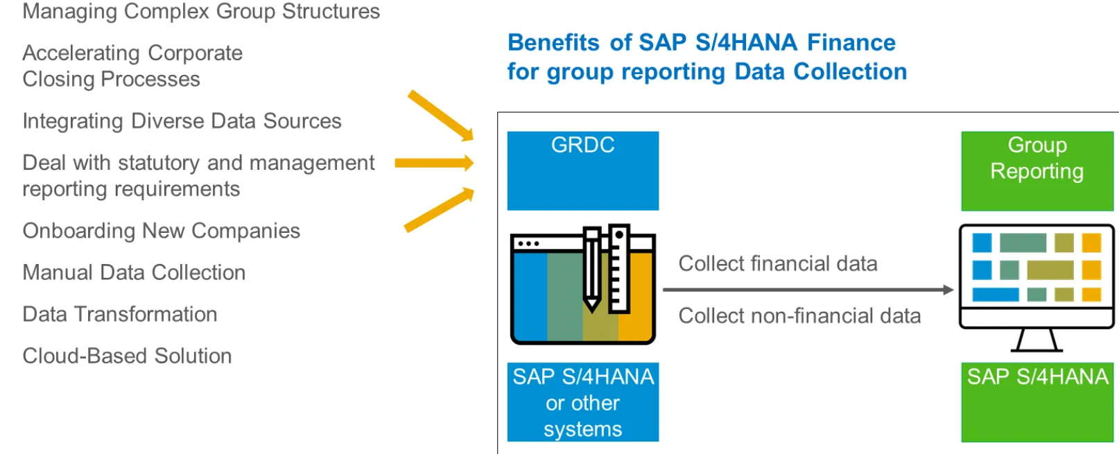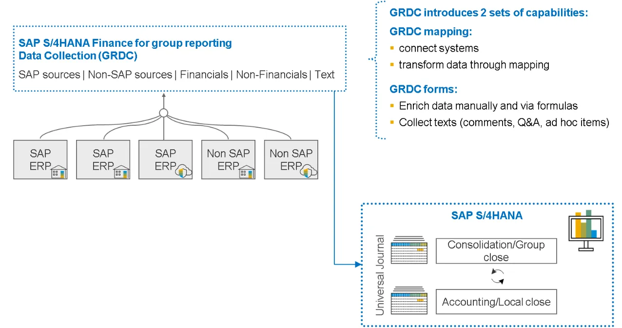 SAP Group Reporting Data Collection (GRDC): Streamline Data Collection with SAP S/4HANA GRDC for Group Reporting.