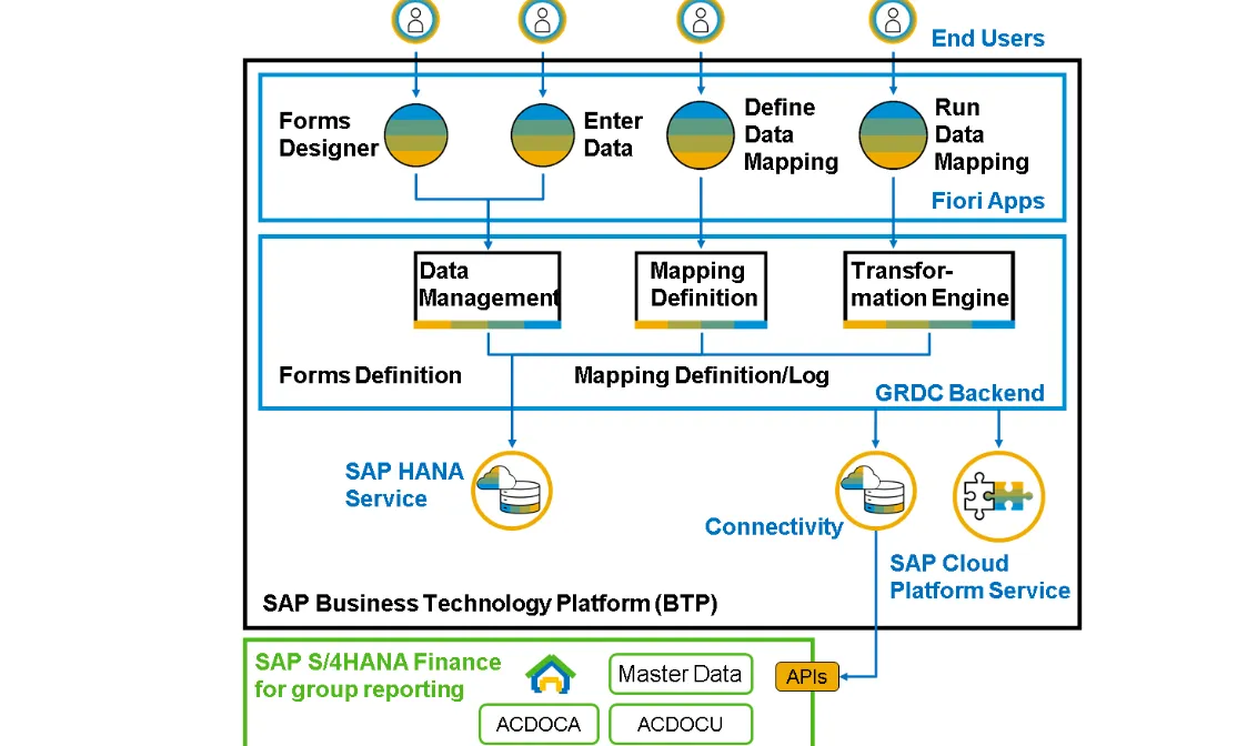 SAP S/4HANA Finance for Group Reporting Data Collection (GRDC) is built on the SAP Business Technology Platform (SAP BTP)