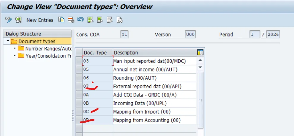 1. Document types (0C, 0D, and 07) used for data mapping in SAP S/4HANA Finance for group reporting Data Collection apps.