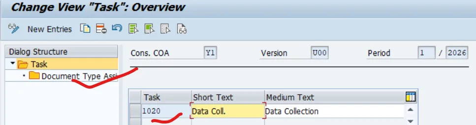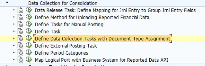 In both cases the document type has to be assigned to the task for your consolidation version. This assignment uses the effective fiscal year and effective period.