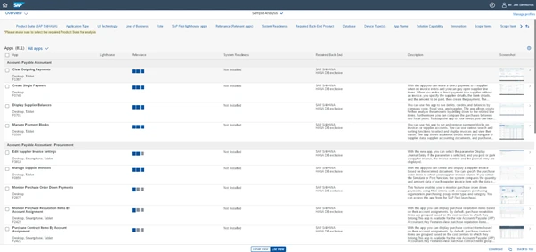 When viewing the Fiori apps from here, there are several features which are available to help out. The apps are sorted into: